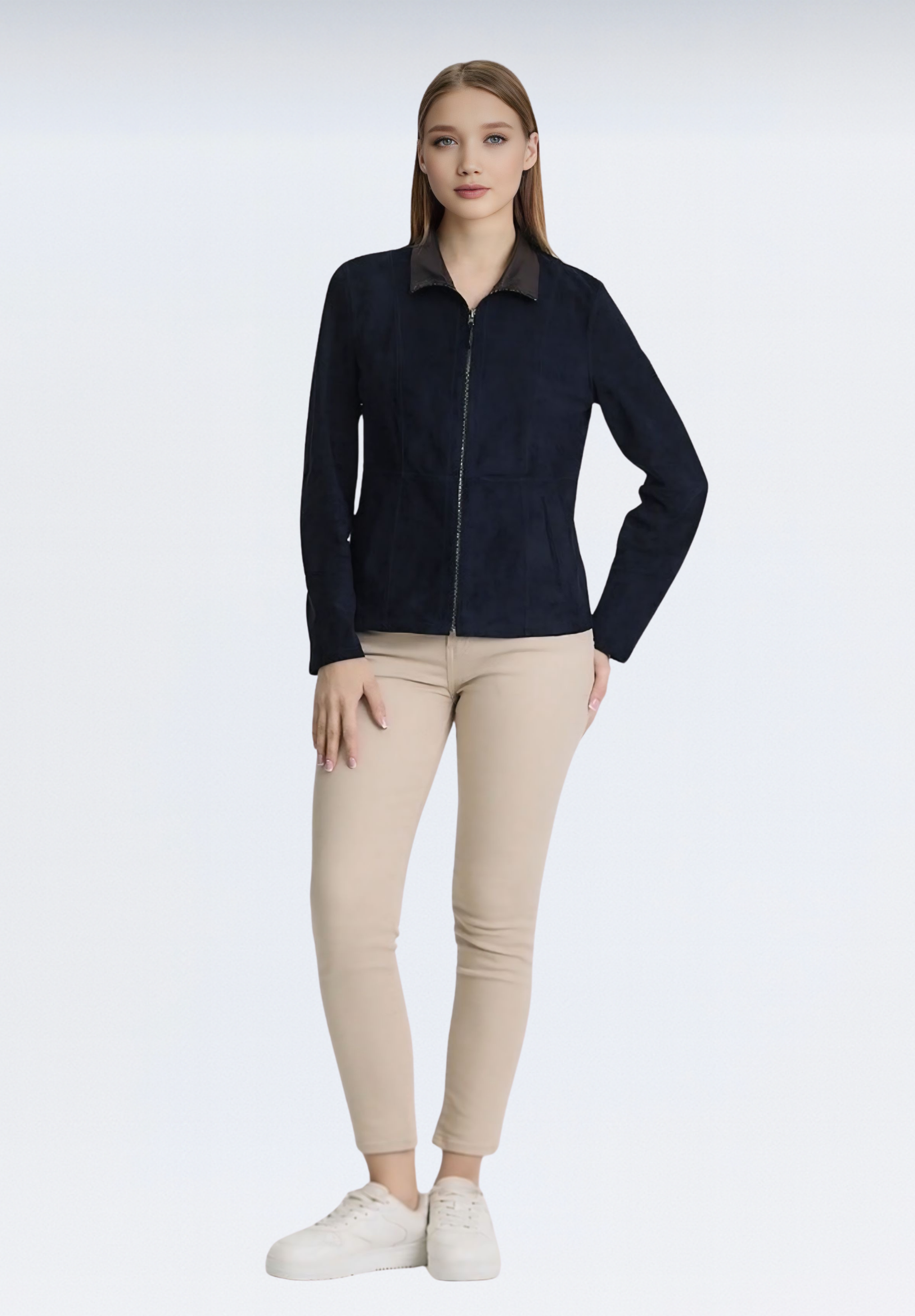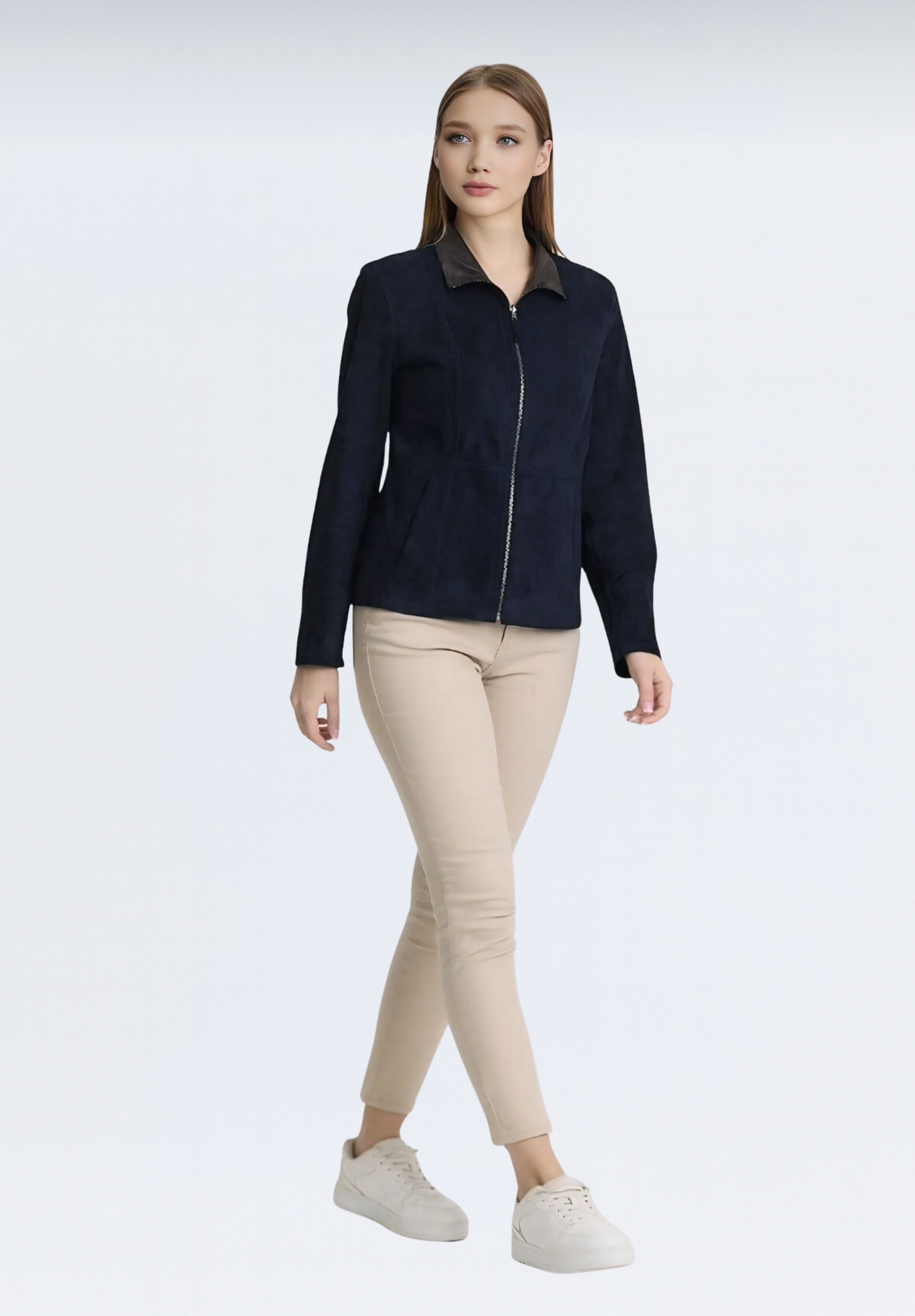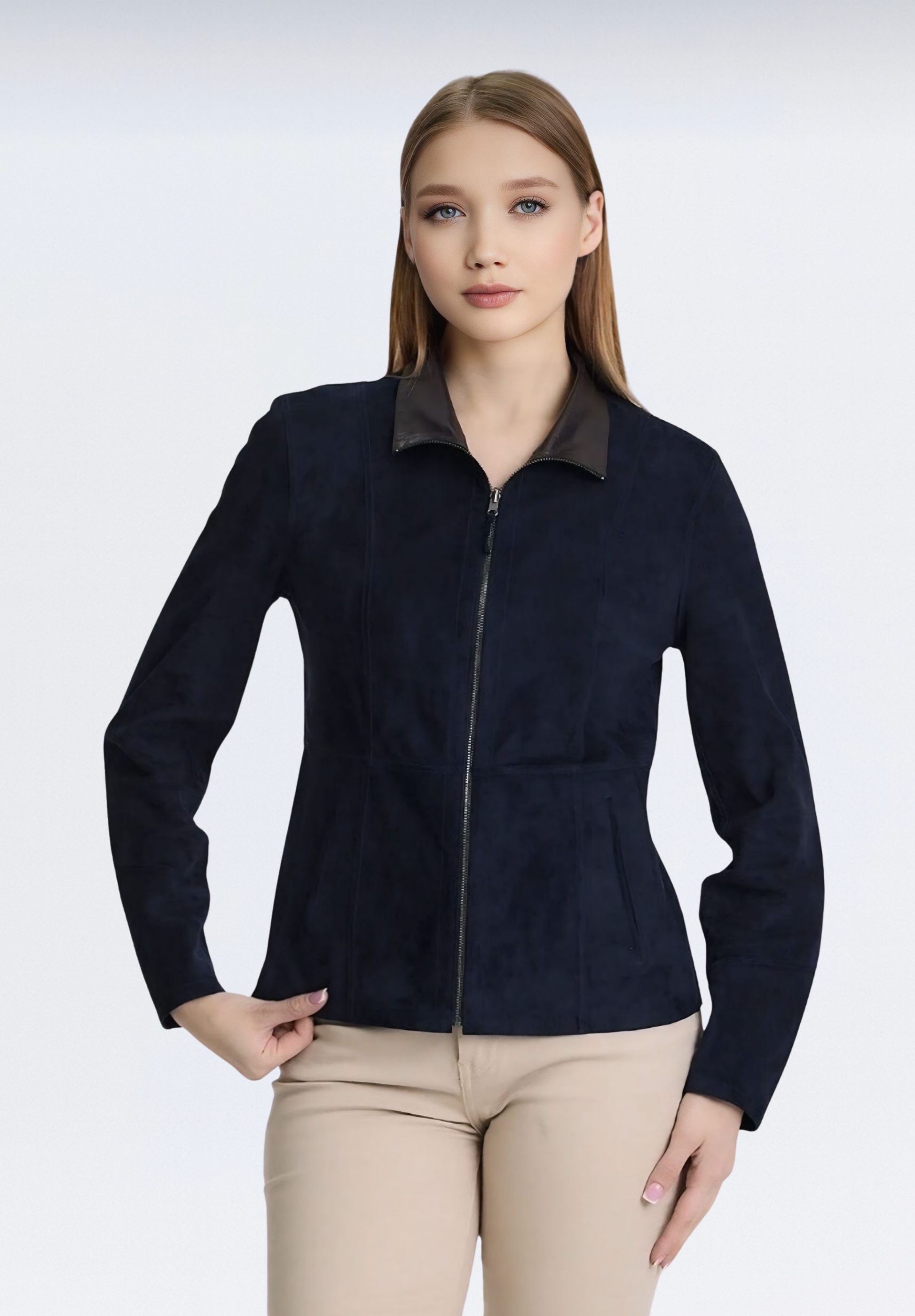 Çift Taraflı Süet Kadın Deri Ceket | Lacivert