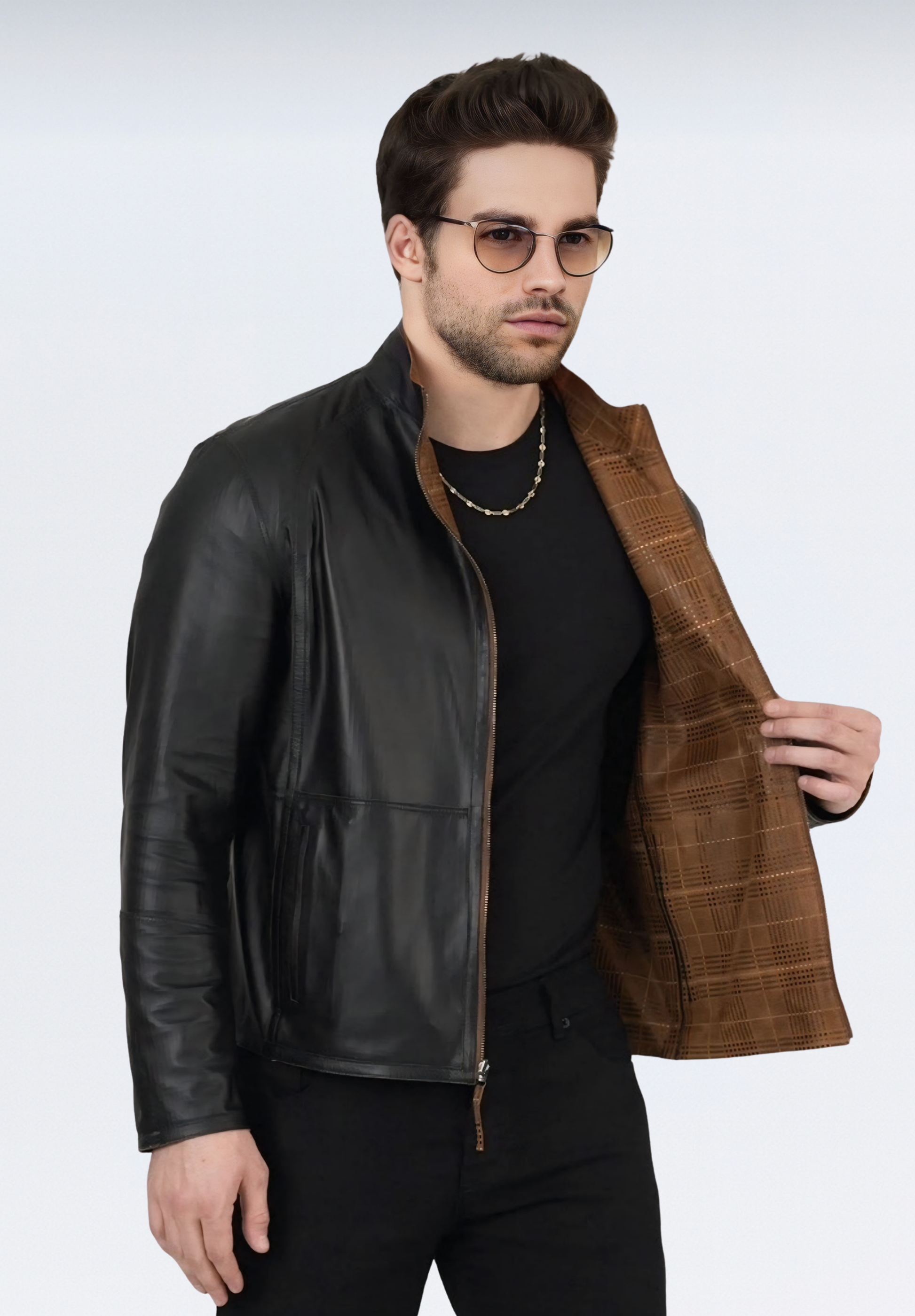 Ceketimiz iki yüzeyde de şıklık sunacak şekilde özel olarak tasarlanmıştır. Bir yüzü klasik deri parlaklığına sahipken, diğer yüzü doğal süet dokudadır. Fermuar ve etiket detayları da her iki yöne uygun olarak yerleştirilmiştir.