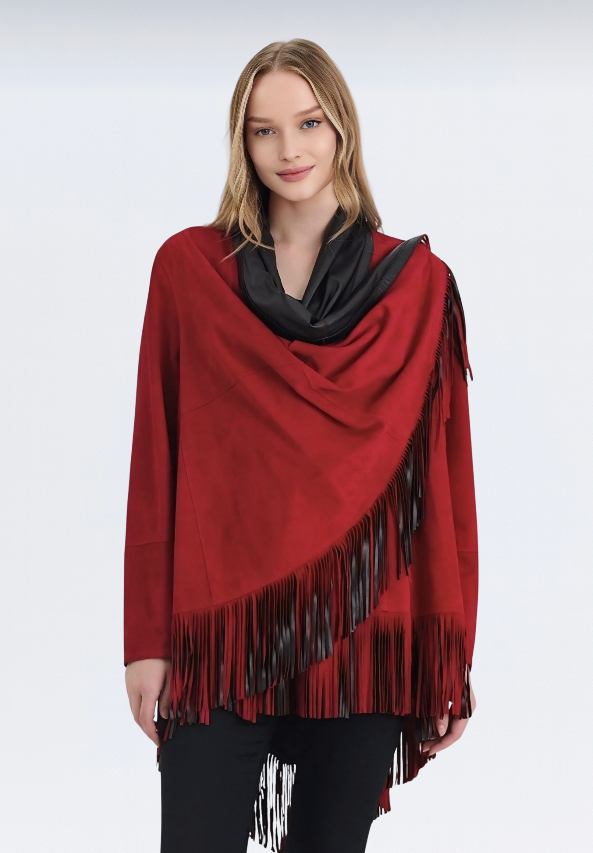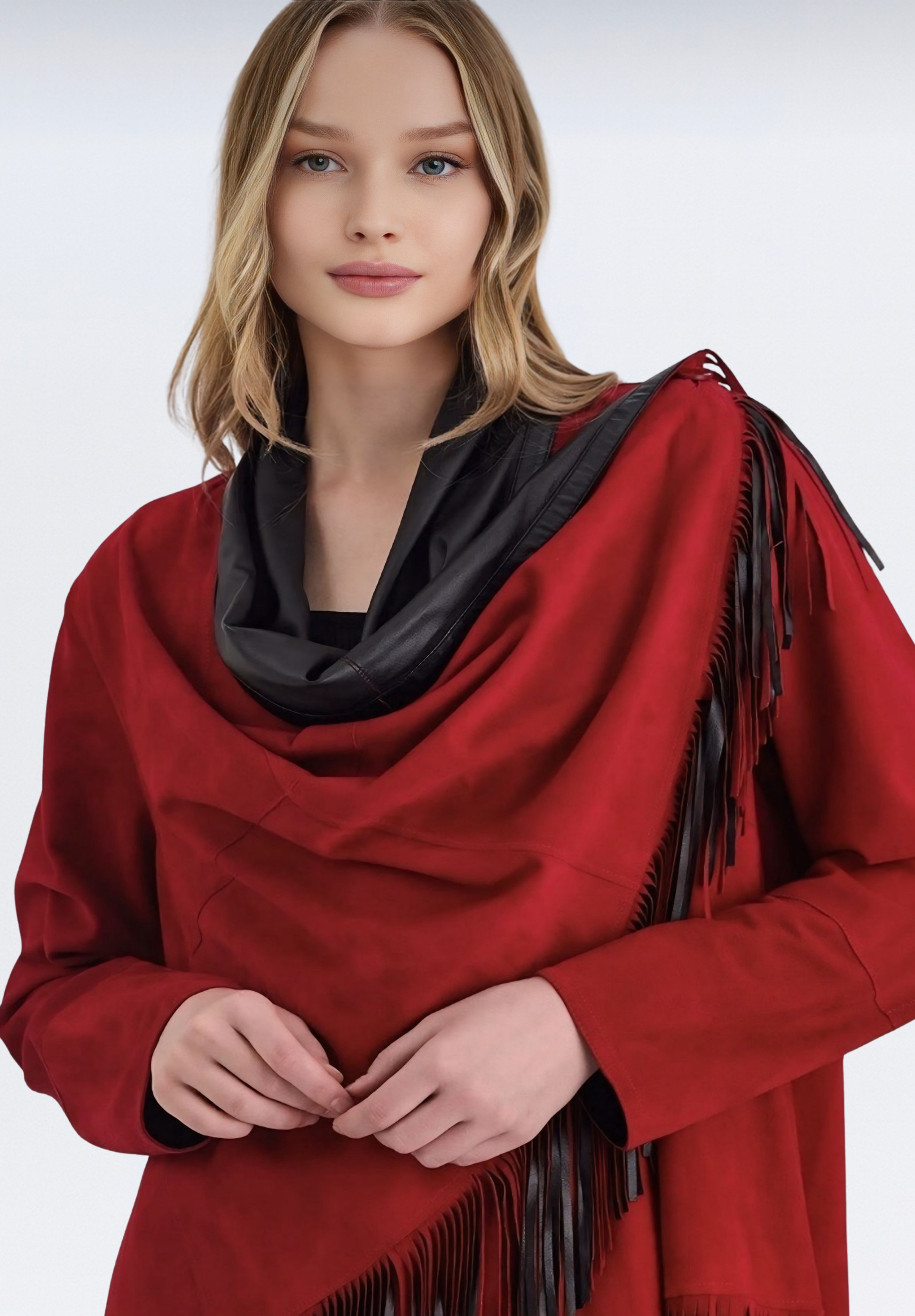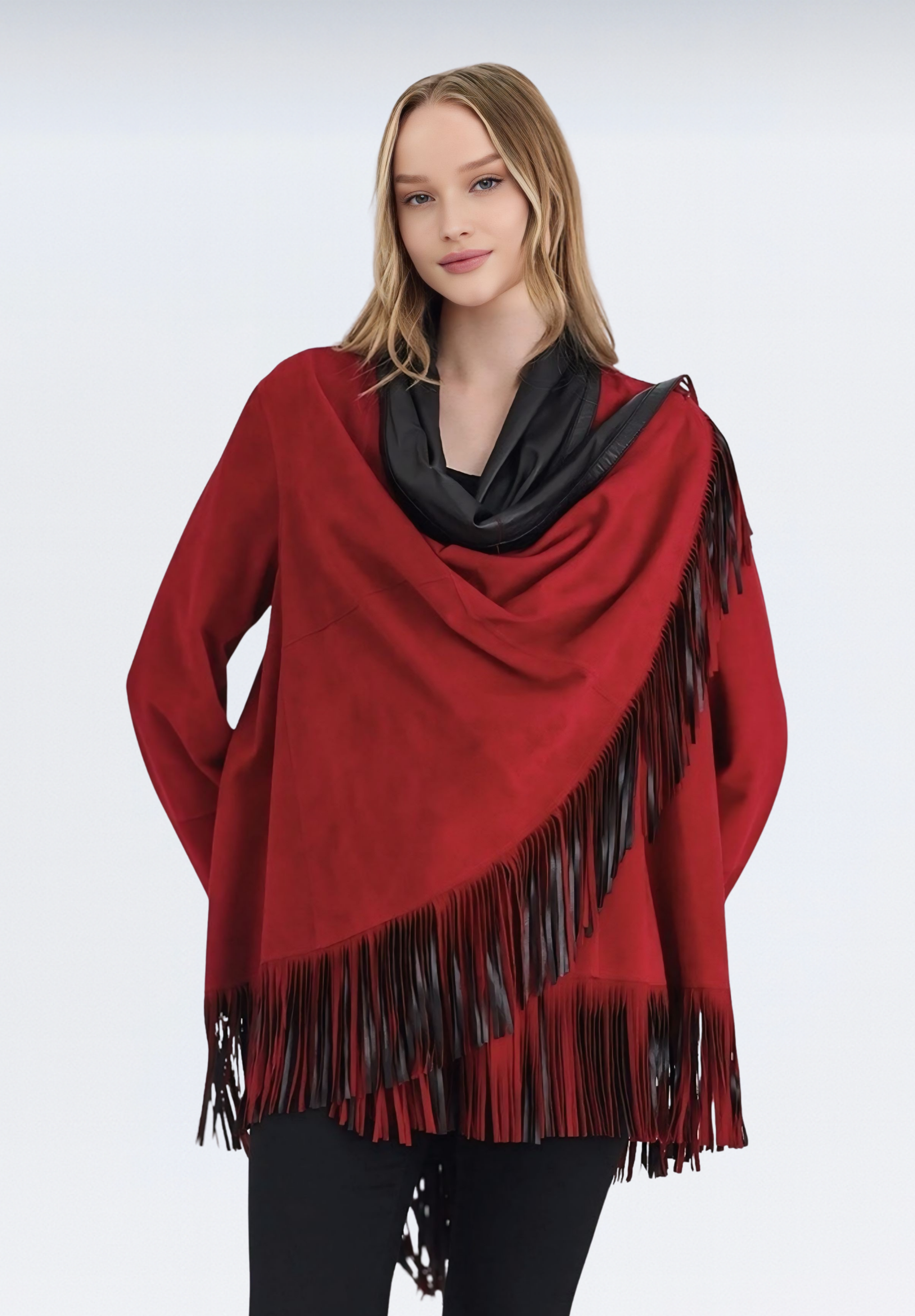 Salisbury Lüks Süet Kadın Panço | Kırmızı