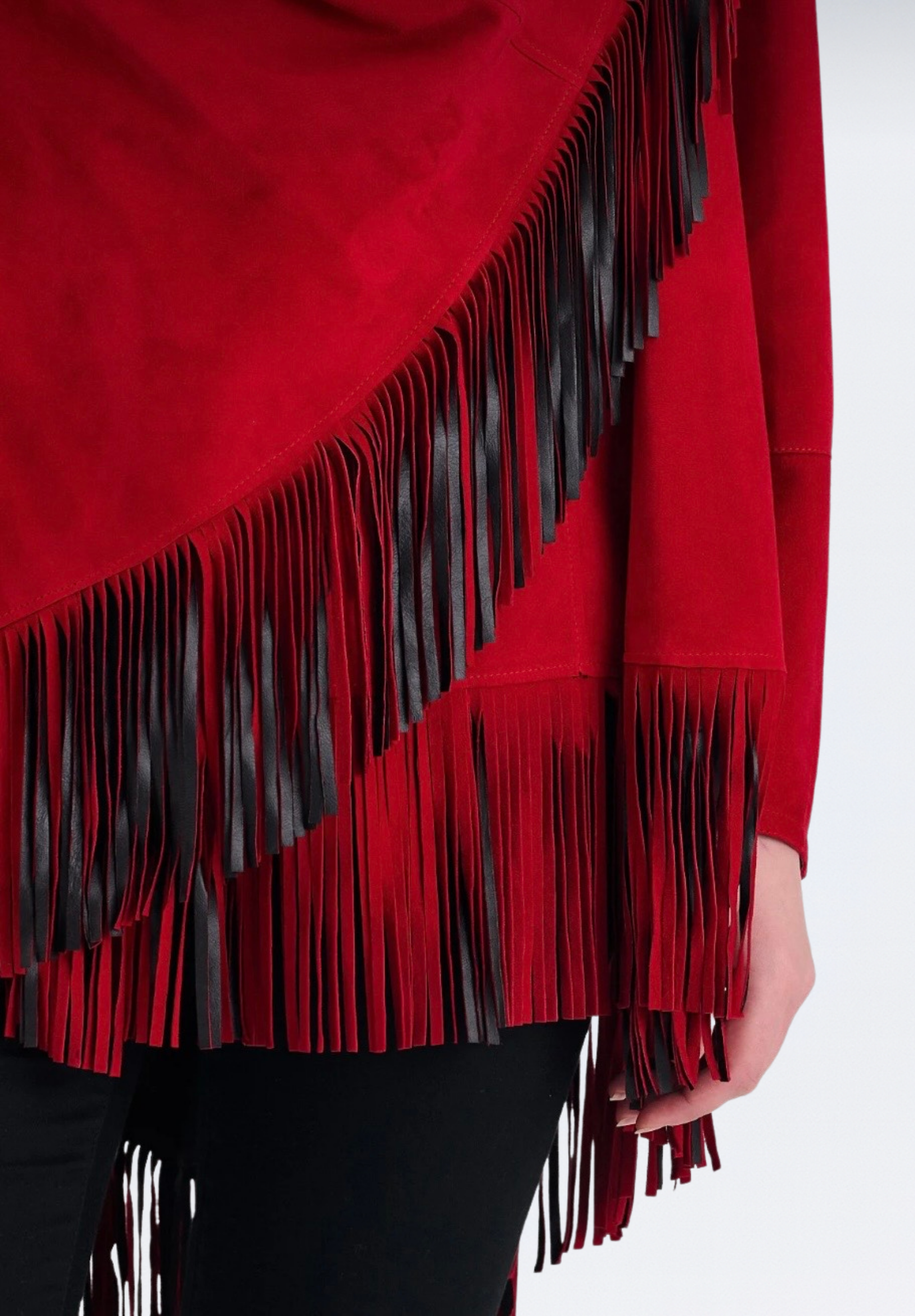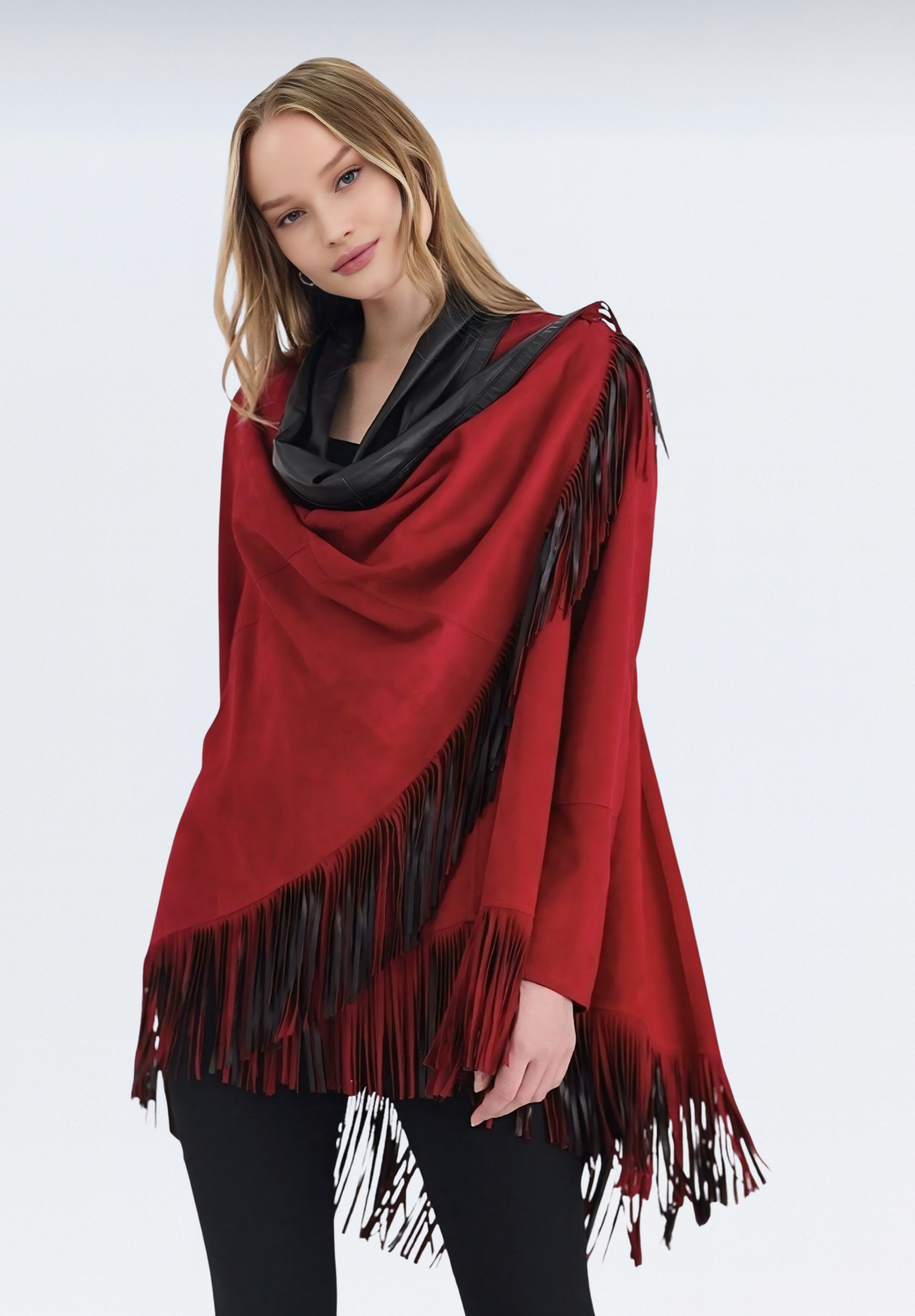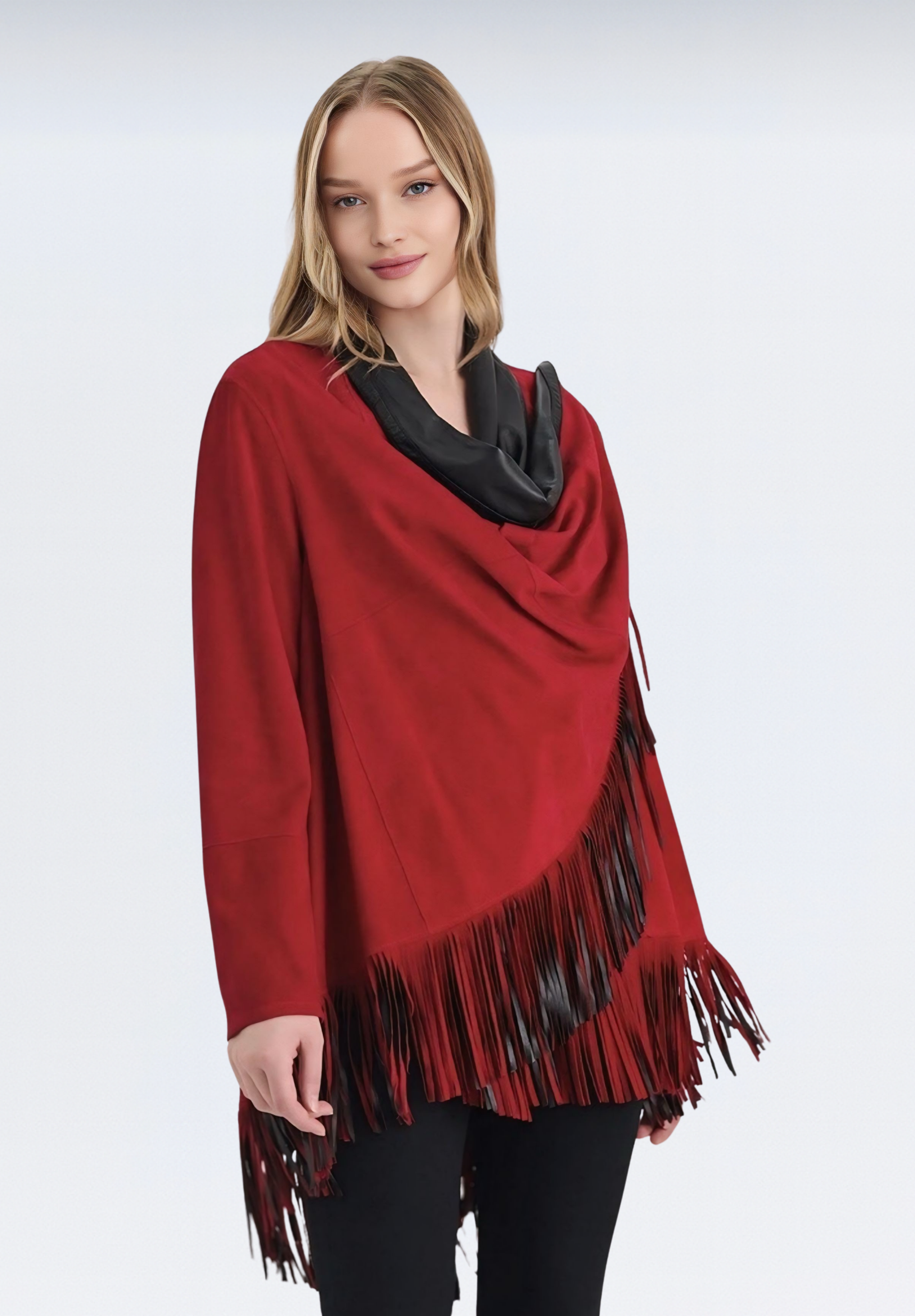 Salisbury Lüks Süet Kadın Panço | Kırmızı