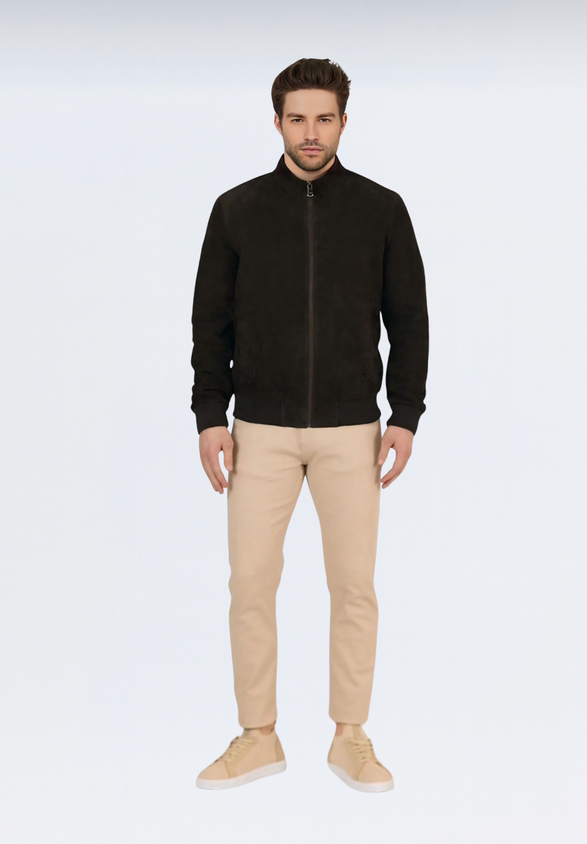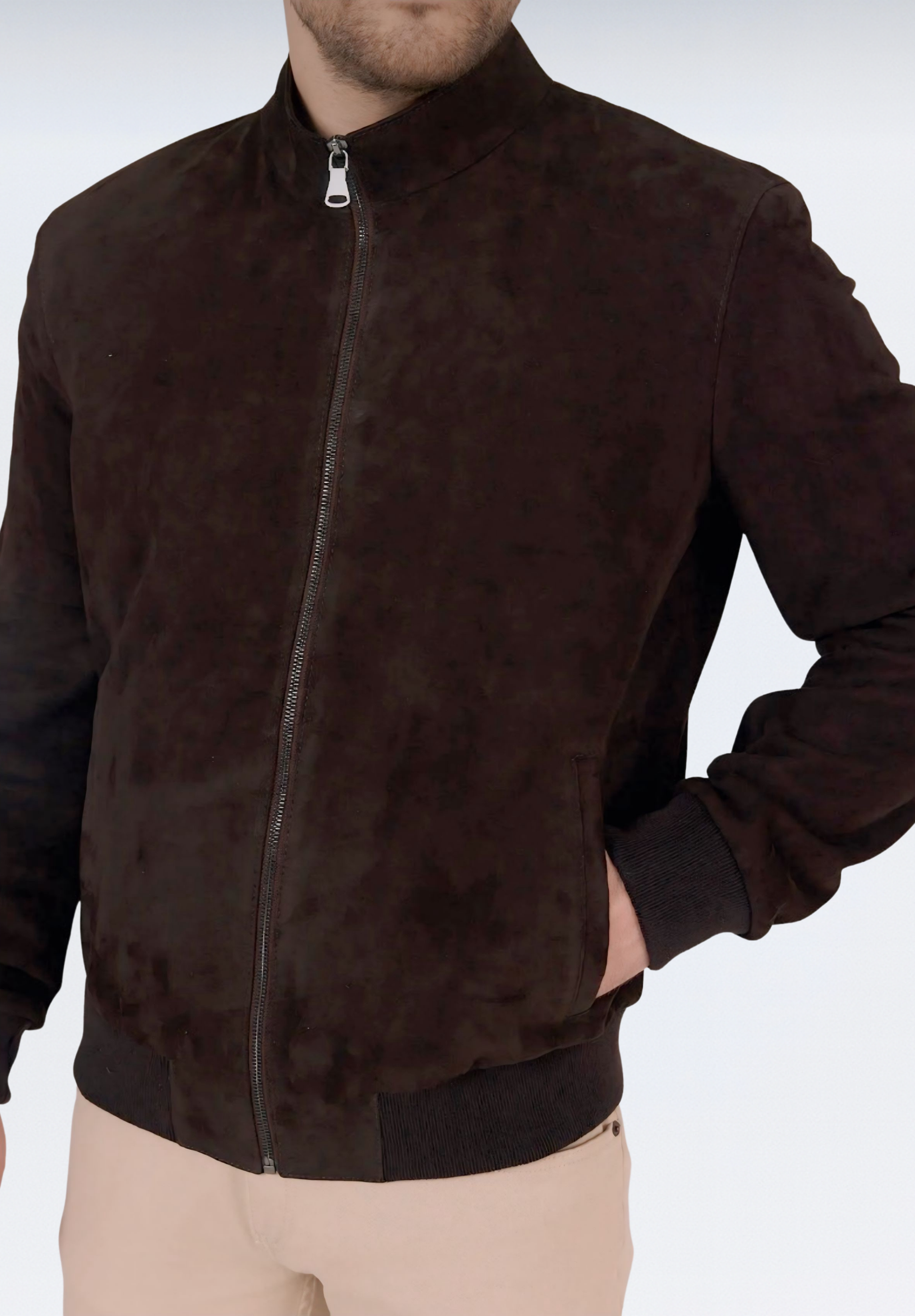 Trikolu Süet Erkek Deri Ceket | Tokyo Kahverengi