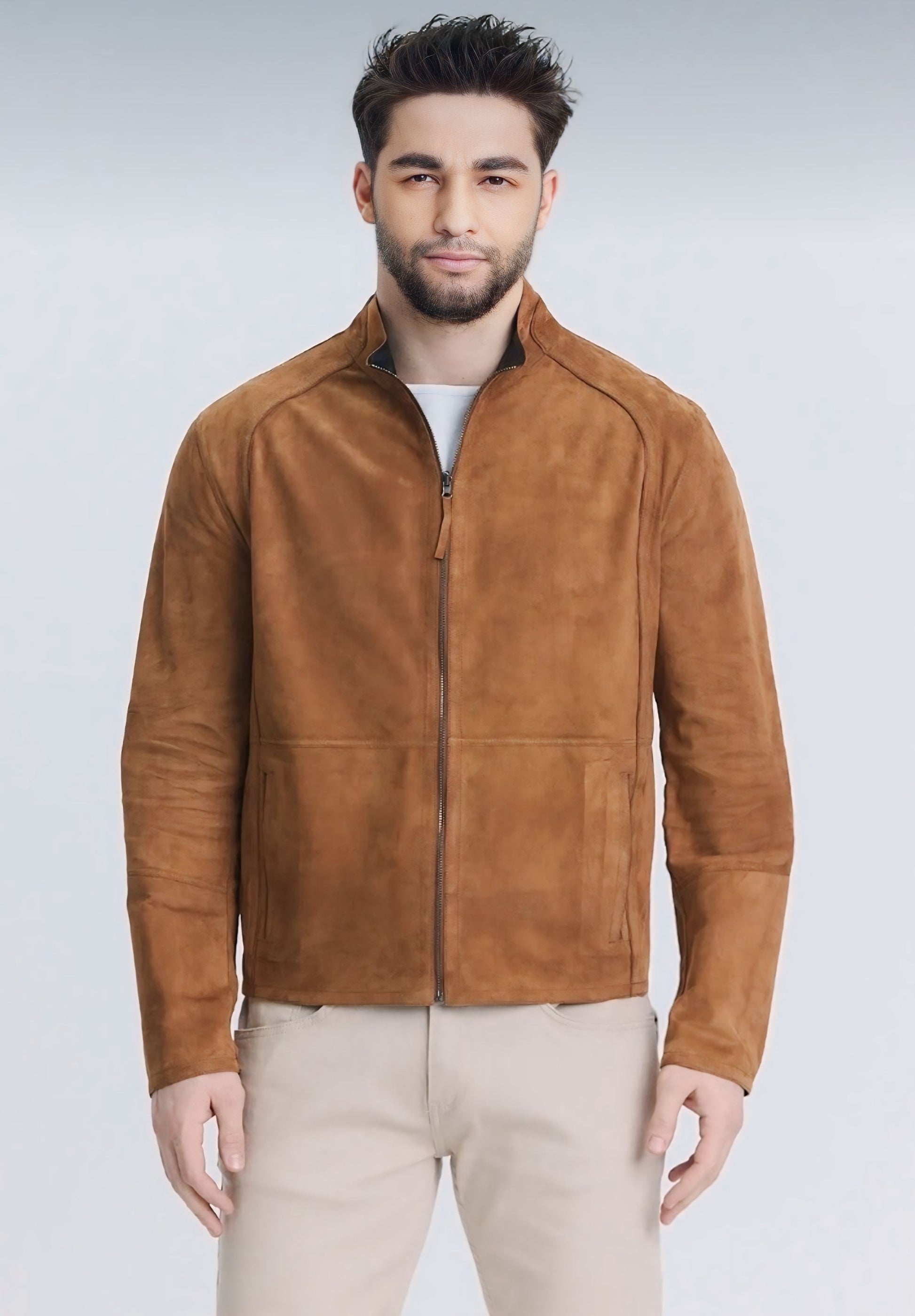 This specially designed jacket is crafted from 100% genuine kid leather and adds functionality to your wardrobe with its reversible design. Its soft texture and lightweight construction ensure all-day comfort. Its natural suede surface offers an elegant look and its breathability ensures a perfect fit.